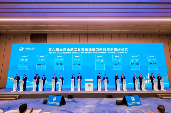 在签约仪式环节,浙江省交易团与来自德国、美国、巴西、瑞士等14个国家和地区的24家境外供应商达成24项进口采购协议,签约金额约145亿元人民币,涉及先进设备、能源资源、农产品等多个领域。
